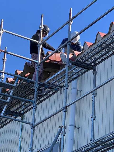 面戸が取り付けられていないため、屋根の面戸部分が開いている状態です。